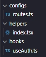Helper folders, which have configs folder including constant variable for project, helpers folder including helpers function for project and hooks folder including helpers hooks for project