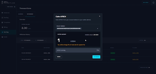 Owner pastes in their BSC wallet address or using connect wallet address to receive AITECH
