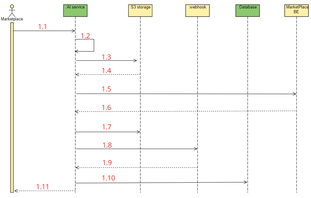 | 1.5 | The AI service request to get a presigned URL on S3 from MarketPlace BE |