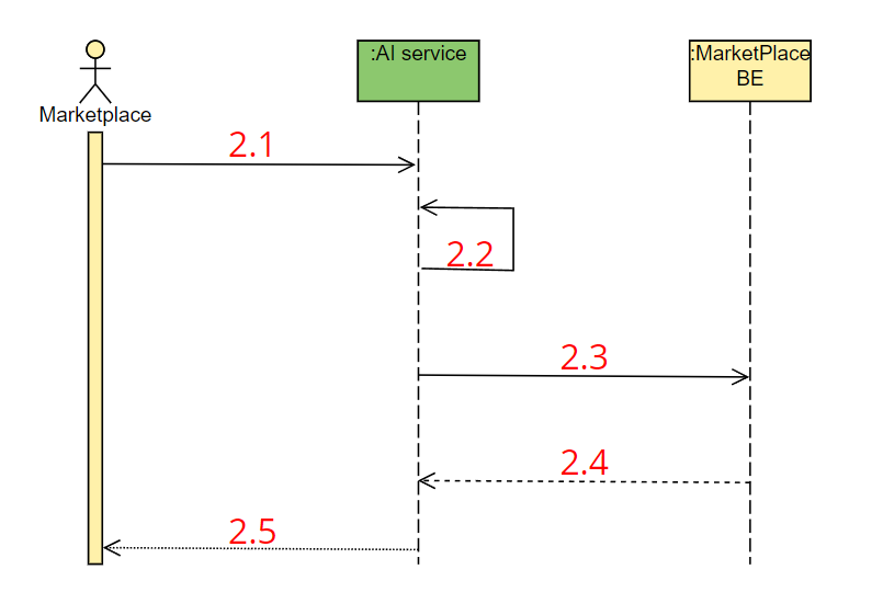 - The AI service will communicate with the marketplace via a RESTful API, which includes the following aspects:Endpoint, Number of Endpoints, Status Code, Header, Body Format, Error Code… (The following sections will provide detailed explanations for each item)